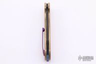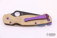 This Paramilitary 2 Linerlock Folder has a black finished clip point blade with thumb hole and notched thumb rest. Handle has custom brass stonewashed scales with stainless steel liners, custom anodized titanium tip up clip and backspacer. Excellent condition. Comes with original box and papers.