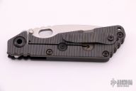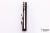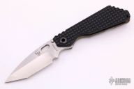 This MSC SNG framelock folder by Mick Strider features a stonewashed tanto blade and a MEFP black aluminum and flamed titanium frame and tip up titanium clip. Includes Hinderer "Lock Bar Stabilizer" for maximum reverse lock retention. Nice detent, lockup and blade seating. Excellent condition.