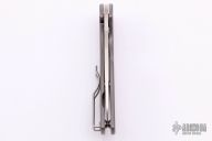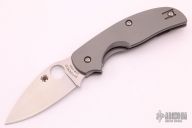 This C123TIP Sage 2 by Spyderco features a satin finished blade with thumb hole, notched thumb rest and choil. The handle is comprised of a bead blasted titanium frame over barrel spacers. Steel wire tip up clip is reversible for left or right hand carry. Great blade seating and lock up. Includes the original box and papers.  Excellent condition.