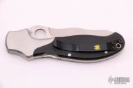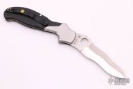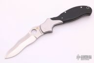 This C104BMP from Spyderco features a satin finish Kris style blade with thumb hole. The handle is comprised of stainless steel bolsters and black G10 scales over steel liners, backspacer and lock bar. Black coated steel clip positioned for tip up carry. Lanyard tube in pommel. Has some light scratches, otherwise excellent condition. Includes original box. This model is discontinued.