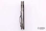 This Domino Flipper has a satin finished CTS-XHP stainless steel drop/spear point blade with thumb hole and notched thumbrest. Handle is stonewashed titanium with A-side carbon fiber pattern G-10 overlay, 4-way reversible black stainless steel clip, and lanyard tube pin. Action is extremely responsive with great lockup. Comes with original box and papers. Has some scratches on the blade and clip, otherwise good condition.