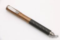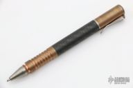 This pen is carefully crafted from premium materials and machined with state of the art CNC equipment. The grip, cap and clip screw are made out of Tellurium Copper. The tip, end piece, striker and clip are made out of 6AI4V Titanium. The body is quadruple woven carbon fiber. The pen comes equipped with a medium black Fisher Space Pen pressurized ink cartridge. To replace the cartridge, unscrew the tip. Included is a package of rubber o-rings, to be applied to the grip if desired. Has some patina, otherwise excellent condition.