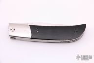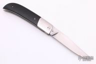 "I have been making folding knives since 1991, at which time I created my first automatic. The folders I make are all one of a kind, but I do occasionally duplicate a style using designs that range from large folding fighters to small gents pocket knives. The mechanism in my knives is an ambidextrous bolster release. The materials include a variety of steels by such makers as Jerry Rados, Daryl Meier, Robert Eggerling and George Werth, however I do use other maker's steels when I find something that looks interesting, and I know that the quality of the steel will be reliable. I prefer to use natural materials such as Fossil Ivory, both Mammoth and Walrus, plus a variety of Pearl for scales or handles. I must admit that my knife making style has been heavily influenced by Bill McHenry and Jason Williams, both of whom originally started me making folding knives. Most of my life has been spent working as a machinist, toolmaker, welder and gunsmith. I became a full time knife maker in June of 2001."