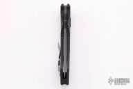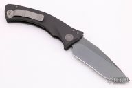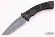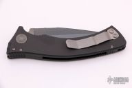 This Amphibian Auto has a DLC clip point recurve blade. Handle is black aluminum with nonslip inserts and bead blasted stainless steel tip up clip. S/N #1035. Dated 02/2002. Includes nylon sheath, original box and papers. Excellent Condition.