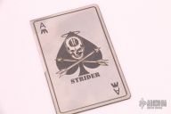 Strider Express Titanium Card Blade by Mummert Knives. Has Fiber Laser Color and Deep Etch. Tungsten carbide edge, RC 72. Comes with original packaging. New condition.