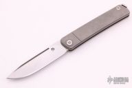 This Gentleman Jack slipjoint by Medford features a satin finished blade with long pull nail nick. Has a tumbled titanium frame with stainless steel backspacer. Comes with original box. Excellent condition.