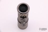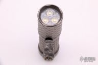 This Gunner Grip/ Tesseract Trident by Hanko Machine Works is made from titanium, it is stonewashed, has a tip up Triple Hard Warrior Steel Flame titanium clip. Components: Nichia 219C High CRI (90+) 4000K. Excellent condition. One Off