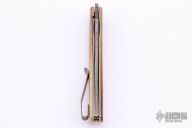 This Swayfront Front Flipper by Brad Zinker features a Razorwire Damascus Persian blade with notched thumbrest and flipper. The handle has mammoth ivory scales, anodized  titanium liners and a tip up titanium clip. Rides on bearings, nice detent, lockup and blade seating. Comes with zippered case. New from maker at the 2021 ICCE show.