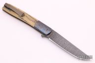 Urban Trapper Flipper - Damascus, ZircuTi and Mammoth Ivory