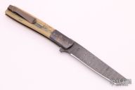 Urban Trapper Tanto Flipper - Damascus, ZircuTi and Mammoth Ivory