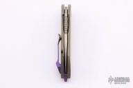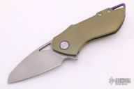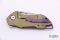 This Riverstone by Grissom Knife and Tool features a tumble finished blade with notched thumbrest and flipper. This handle has a titanium frame, backspacer, pocket clip,collars and hardware. Stainless steel lock insert, ceramic ball bearings and detent. Stainless steel standoffs, blade stop and pivot. Comes with original box and zippered case. New from maker.