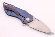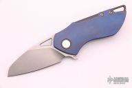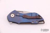 This Riverstone by Grissom Knife and Tool features a tumble finished blade with notched thumbrest and flipper. This handle has a titanium frame, backspacer, pocket clip,collars and hardware. Stainless steel lock insert, ceramic ball bearings and detent. Stainless steel standoffs, blade stop and pivot. Comes with original box and zippered case. New from maker.