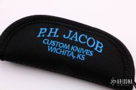 This Lannys Clip by Phil Jacob features a hand rub satin finished blade with nail nick. The handle has black paper micarta covers over blue G10 liners, stainless steel spring. Has half-stop, flush in all positions. Comes with a zippered case and COA #20-200. New from maker.
