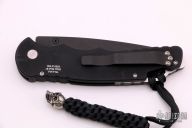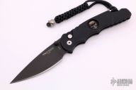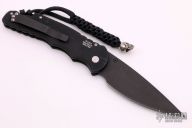 The custom TR-4 by Protech features a black blade with dual thumbstuds. The handle has a black aluminum frame with a stainless steel tip up clip. Nice detent, lockup and blade seating. Excellent condition. Comes with a Pro-Tech box, papers and a nylon sheath. #268 of 500