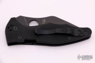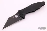 This Yojimbo 2 by Spyderco features a black finished wharncliffe blade with thumbhole. The handle has a black G-10 frame with stainless steel liners, lock is on the spine of handle. 4-way reversible stainless steel clip. Nice detent, lockup and blade seating. Comes with original box and papers. Excellent condition.