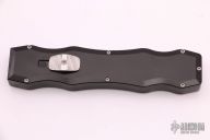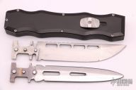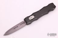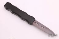 This Sand Shark OTF automatic features a bronzed double edge blade and black aluminum handle. The Sand Shark was a limited production and is no longer being made. Has some minor scuffs, a couple of small dings and some light spotting on the blade, otherwise excellent condition.  Includes two additional blades. Includes the original box and papers.  S/N 05.