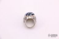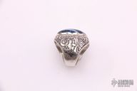 This Ring by Joe Scherhaufer is made of Sterling Silver and has a blue mammoth tooth inlay. Has engraved wooly mammoth on both sides. Size 13. New from maker.