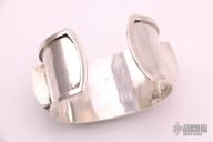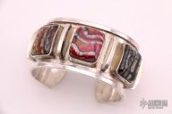 This bracelet by Joe Scherhaufer is made of sterling silver and has mammoth tooth inlays. New from maker.