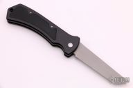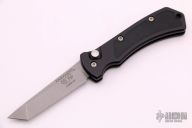 This Side-opening coil spring automatic by Paragon features a bead blast chisel ground tanto blade. Black aluminum frame with rubber inlays. Includes a back nylon sheath. Excellent Condition.