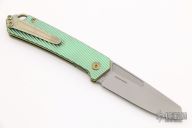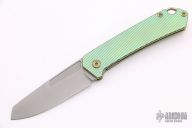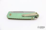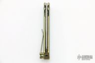 This OEM Slim is a Richard Rogers Design and features a bead blasted blade. The handle is milled and anodized titanium with blasted titanium backspacer, hardware and tip up clip. Nice detent, lockup and blade seating. Comes with original packaging and brown leather slip sheath. New condition.