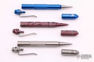This is Rick Hinderer's new "Extreme Duty Pen", an upgraded version of his Modular Kubaton model. Rick describes some advantages of this new model: "This pen is shorter overall than the Modular Kubaton with pen attachment, this will make this pen easier to write with but still making it a very formidable weapon. This pen is also using the larger Fisher Space pen refill, which means more writing between refills. The top end of this pen still retains the threading for the Modular Kubaton attachments so you can still use the same attachments to do up your pen the way you want it." Excellent Condition. This is three pens, two aluminum and one stainless steel. All with original packaging. Excellent condition.
