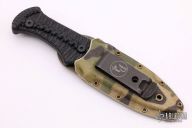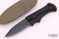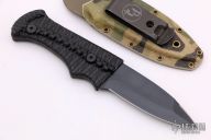 This Blood Shark by Tracker Dan features a black finished blade with a sharpened top edge, .130" blade stock and 1.028" blade depth. The handle has milled carbon fiber grip. Comes with a kydex sheath and the knife will fit in either direction. Excellent condition.