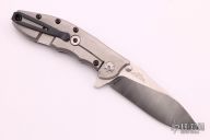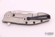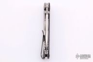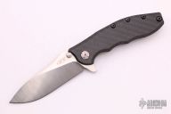 This Hinderer Designed 0562 Framelock Flipper has a drop/ spear point blade with swedge, notched thumb rest, dual thumb studs and flipper. Handle is carbon fiber and stonewashed titanium - with stainless steel lockbar insert and lockbar stabilizer. Stainless steel clip is tip up. Includes original box and papers. Excellent condition. #20825