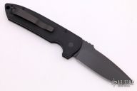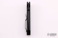 This LG303 Rockeye has a black blade with notched thumbrest. The handle has a black aluminum frame with a matching steel tip up pocket clip and a tritium button. Typical flawless Pro-tech mechanics and blade seating. New from maker.