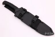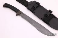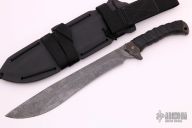 This Parabellum by Zombie Tools features a recurve blade with an intentional patina looking finish, .204" blade stock and 1.900" blade depth, full tang construction. The handle has distressed aluminum scales with black leather wrap, extended tang. Comes with kydex sheath. Has some scratches, otherwise excellent condition.