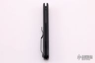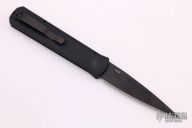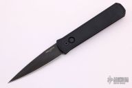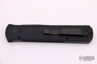 This 921 SWAT Godfather features a black blade with notched thumbrest. The handle has a black aluminum frame with black hardware, black push button and black stainless steel tip up clip.  Comes with original box and papers. Excellent condition.