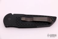 This Tactical Response TR-3 X1 Operator Series features a "Fish Scale" milled, black anodized aluminum body, which provides good traction and looks great. The blade is black finished 154-CM stainless steel with a plain cutting edge. The TR-3 is a knife that won't let you down. It fires hard, locks up like a rock, and feels great in hand. The slim design sits comfortably for tip-up pocket carry. Tritium is inset into the firing button, adding a unique and awesome flare to the piece. Comes with original box and papers. Excellent condition.