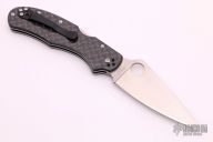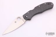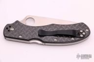 This lock-back folder features a satin finished blade with thumb-hole and notched thumb-rest. The handle has carbon fiber scales, stainless steel liners and back-spacer, and black stainless steel clip, 4-way reversible. Comes with original box and papers. Excellent condition.
