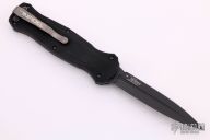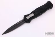"Introducing an OTF like none-other.. The new Infidel® is rapidly making believers out of many a skeptic. Built for strength and reliability the patent pending double-action mechanics get it done over the long haul. Grab on and you will find the handle grip rock-solid with its patented machined in Presidio® style bi-directional tread pattern, and overall generous sizing for gloved hands. Intuitively pressure the release-slide forward and its spear-point edged steel fires and locks up with a unique three-point retention system with amazingly negligible blade play. Reverse the process and the blade retracts in a rapid blur of motion. The Benchmade Infidel is a special operator’s fantasy come true." Excellent condition. Comes with original sheath.