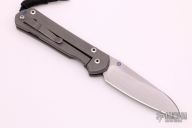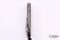 This Large Sebenza 21 Insingo by Chris Reeve Knives features bead blasted titanium frame and pocket clip, Tumble finish blade with single anodized titanium thumb stud. Nice function, strong lock up, nice detent and blade seating is centered. Has scuffs and scratches, otherwise good condition. 09-50 on frame.