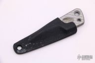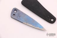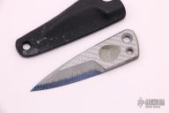 This ThumbTAC by Warren Thomas features a fingerprint anodized chisel ground titanium blade with silver Twill laminate and a carbidized edge. 0.223" blade stock and .918" blade depth. Includes kydex sheath. Excellent condition.