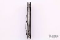 This Domino Flipper has a satin finished CTS-XHP stainless steel drop/ spear point blade with thumb hole and notched thumb rest. Handle is stonewashed titanium with A-side blue weave and lighting strike carbon fiber overlay, 4-way reversible black stainless steel clip, and lanyard tube pin. Action is extremely responsive with great lockup. Excellent condition.