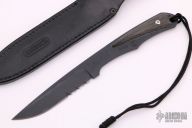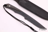 "Small enough for convenient carry but large enough to do substantial work, the Inyoni combines function with elegance, hi-tech with tradition. Inyoni is the Zulu word for “bird” and the slim blade works easily with birds, fish and small game. The black S30V full tang blade is notably stain resistant and is complemented with a comfortable handle of black canvas micarta. A leather belt sheath completes the Inyoni. Has a few light scuffs, otherwise excellent condition.