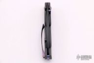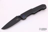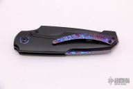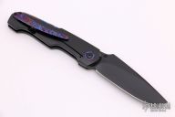 This Boudicca by Anton van der Westhuizen features a black cerakote finished blade with a single timascus thumbstud. The handle has a black cerakote finished titanium frame with timascus timascus pivot collars, backspacer and tip up clip. Rides on ceramic IKBS, nice detent, lockup and blade seating. Has concealed hardware and overtravel stop. Comes with a zippered case and COA. New from maker.