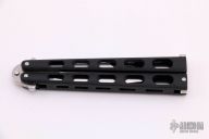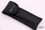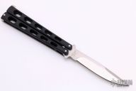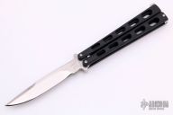 This Model 239B balisong by Benchmade features a stonewashed blade with false top edge. The handles are coated black and the t-latch is polished. Comes with a nylon belt sheath. Has a few light scratches, otherwise excellent condition.