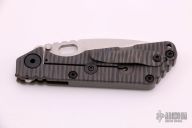 This MSC SNG framelock folder by Mick Strider features a stonewashed finished blade and a dimple pattern black/green/grey G-10 and flamed titanium frame and tip up titanium clip. Includes Hinderer "Lock Bar Stabilizer" for maximum reverse lock retention. Nice detent, lockup and blade seating. New condition.