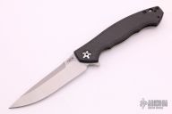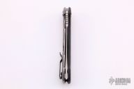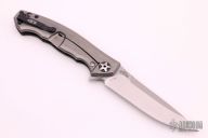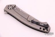 This 0452CF Sinkevich designed folder from Zero Tolerance features a drop point blade with swedge. The blade has tumble finished flats and satin grinds. The handle has a carbon fiber scale on the non lock side, and a tumble finish titanium frame lock on the other. Black coated stainless steel, tip up pocket clip. Serial #19549. Excellent condition.