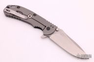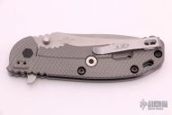 This ZT 0560 Hinderer design has a stonewashed drop point blade with dual thumb studs and notched thumb rest. Handle is black G-10 A-side with titanium B-side. Has 4-way reversible stainless steel clip and lanyard hole.  S/N 1620. Includes the original box and papers.  Excellent Condition.