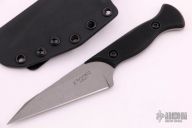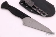 The Kramer Custom Knives Do Know Harm was created based on the requirements of a currently practicing 18D trained combat and trauma medical doctor. Based off of an 11B scalpel blade and designed primarily as a medical tool, it also excels in defensive as well as EDC applications. The Do Know Harm can be called upon whenever you need precision work to be done. Its thin wharncliffe blade with acute point and two sets of jimping allow for unparalleled control. With a full grip the knife pierces and cuts aggressively beyond its relatively small footprint. A textured and contoured G10 handle affords most grip styles for the task at hand. Forward jimping allows control while climbing far forward on the knife for delicate work. The darkened AEB-L steel is able to hold a razor edge with a thin spine. Combined with its tactile G10 slabs, the Do Know Harm has a remarkably thin footprint.