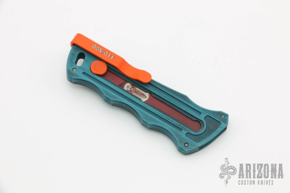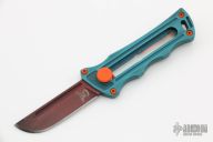 The KatanaX Manual OTF is an exceptional EDC knife.  It has a Katana M390 blade with Grade 5 Titanium handles.  The blade extends and retracts from the front of the handle, sliding on rails.  There are no springs involved just the mechanical movement of pushing and pulling of the button. Comes with original zippered case. Excellent condition.