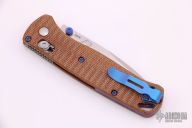 The 535 Bugout knife is built with a custom natural canvas micarta handle and a stonewash finished blade with a plain cutting edge.