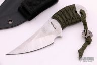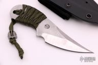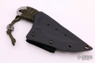 This knife by Mick Strider features a two-tone blade with false top edge, .217" blade stock and 1.512" blade depth, full tang construction with paracord wrap. Comes with kydex sheath. Excellent condition.