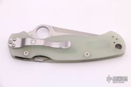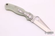 This G81GM4BKP2 Paramilitary 2 by Spyderco features a satin finished tanto blade with thumb hole, notched thumb ramp and choil. The handle is comprised of textured jade G10 scales over a stainless steel subframe and lockbar. 4 way adjustable pocket clip and lanyard tube in pommel. Includes original box and paperwork. Excellent condition.