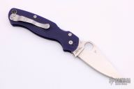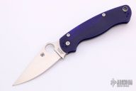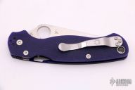 This Paramilitary 2 from Spyderco has a satin finished clip point blade with thumb hole and notched thumb rest. Handle is blue G10 with stainless steel liners and stainless steel 4-way reversible clip. Small ding on the front of scale, otherwise excellent condition. Comes with original box and paperwork.