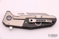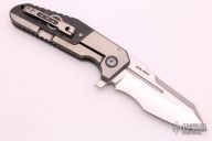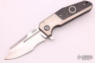 This Deluxe Pocket Rocket Flipper by Shane Sibert features a satin finished blade with notched thumbrest, fullers and notched flipper. The handle has a satin finished titanium frame with bead blasted edged, inlaid marble carbon fiber scales and pivot collars, floating marble carbon fiber backspacer, tip up titanium clip with marble carbon fiber inlay and a titanium roller, lanyard hole at the butt. Nice detent, lockup and blade seating. Comes with Bill's velcro case, COA dated 8-2016. Excellent condition.
