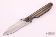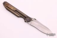 This DDC JR10 by Duane Dwyer is #001. It features a bead blast finished blade with thumbdisc and dual thumbstuds. The handle has a milled, bead blasted and anodized titanium frame with a matching tip up reversible clip. Nice detent, lockup and blade seating. Comes with nylon zippered case. #001 on blade tang. Excellent condition.